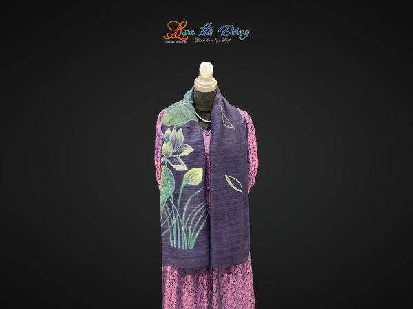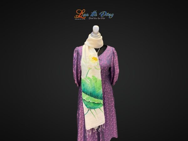Khăn Lụa Choàng Cổ Vẽ Tay Họa Tiết Hoa Sen MNV-KLTA9180-3