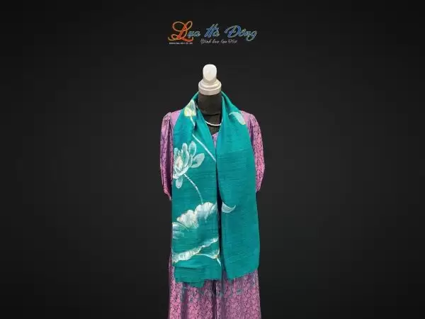 Khăn lụa vẽ tay hoa sen nhiều mẫu 60x180 KLNL003