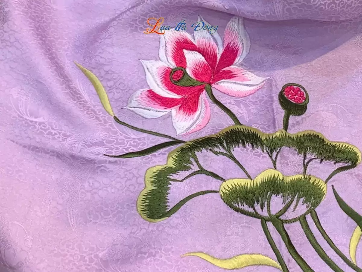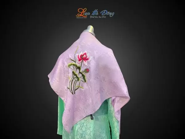 Khăn Lụa Hà Đông Thêu Hoa Sen Hồng: Tinh Hoa Làng Nghề Việt Trên Sắc Tím Hoa Cà