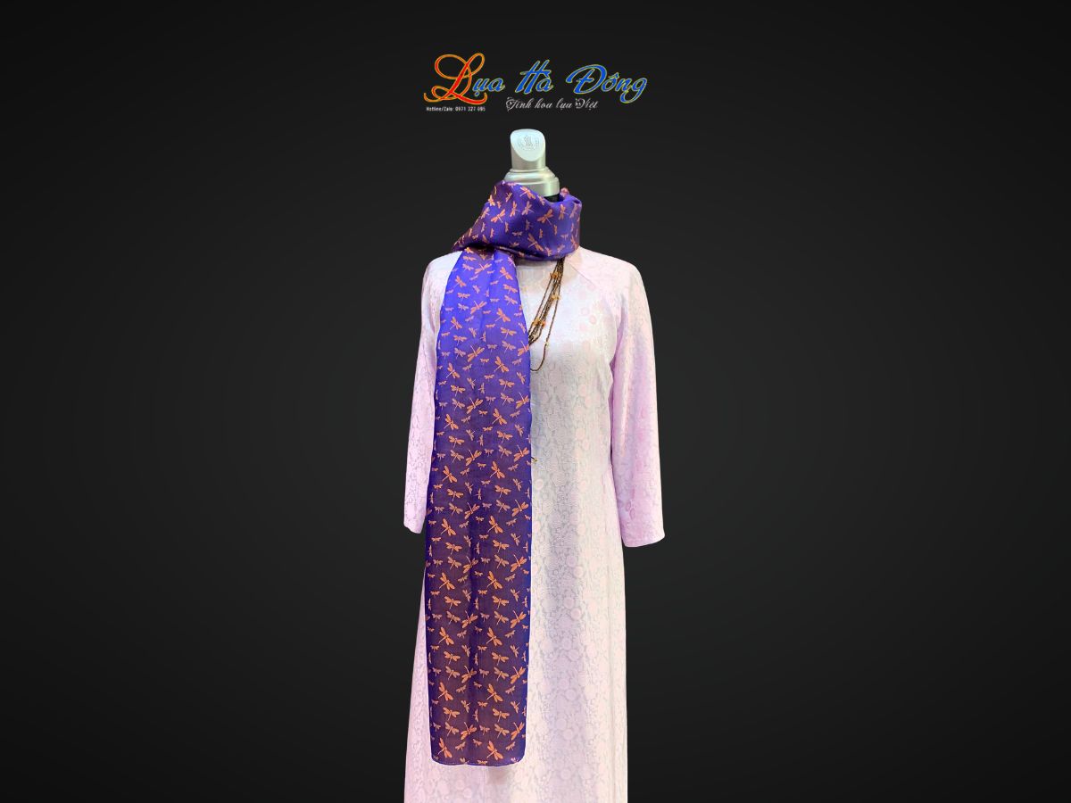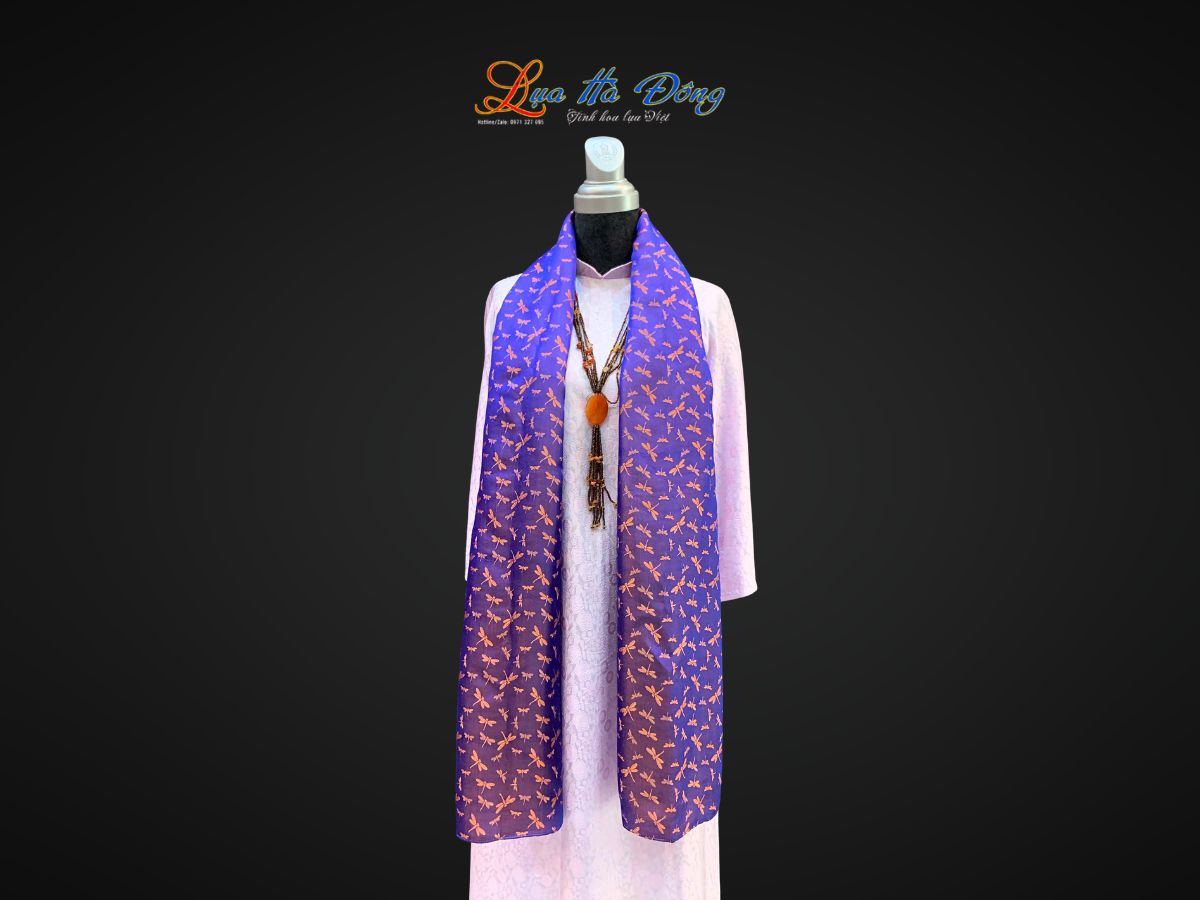 2. Nét Độc Đáo Của Khăn Lụa Dài Họa Tiết Chuồn Chuồn Tím Cam