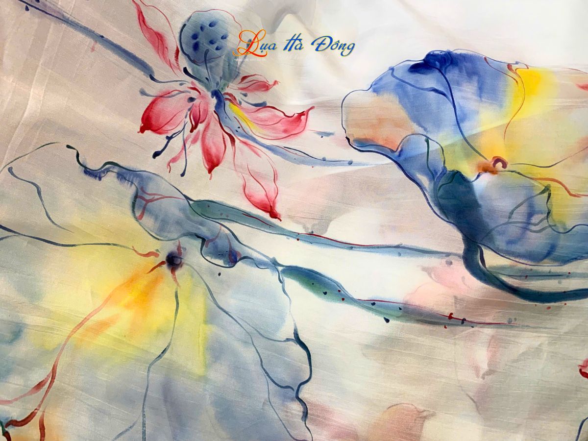 - Sắc thái Tinh tế: Màu sắc của sen thường là hồng phớt, trắng ngọc, kết hợp hài hòa trên nền lụa tự nhiên, tạo nên vẻ đẹp dịu dàng, quý phái.
