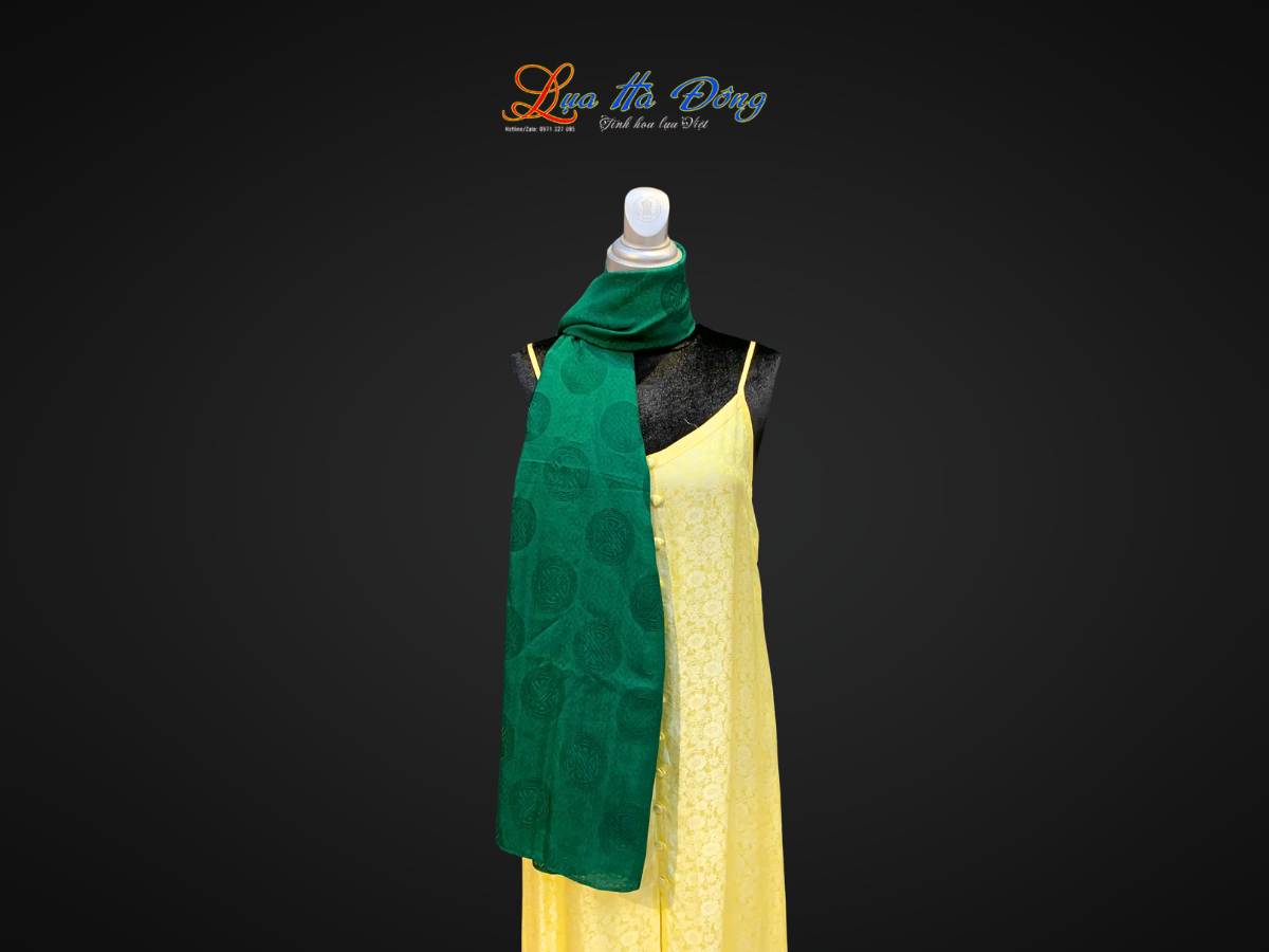 Khăn lụa tơ tằm vân cổ triện thọ màu xanh lá KLNL89-12