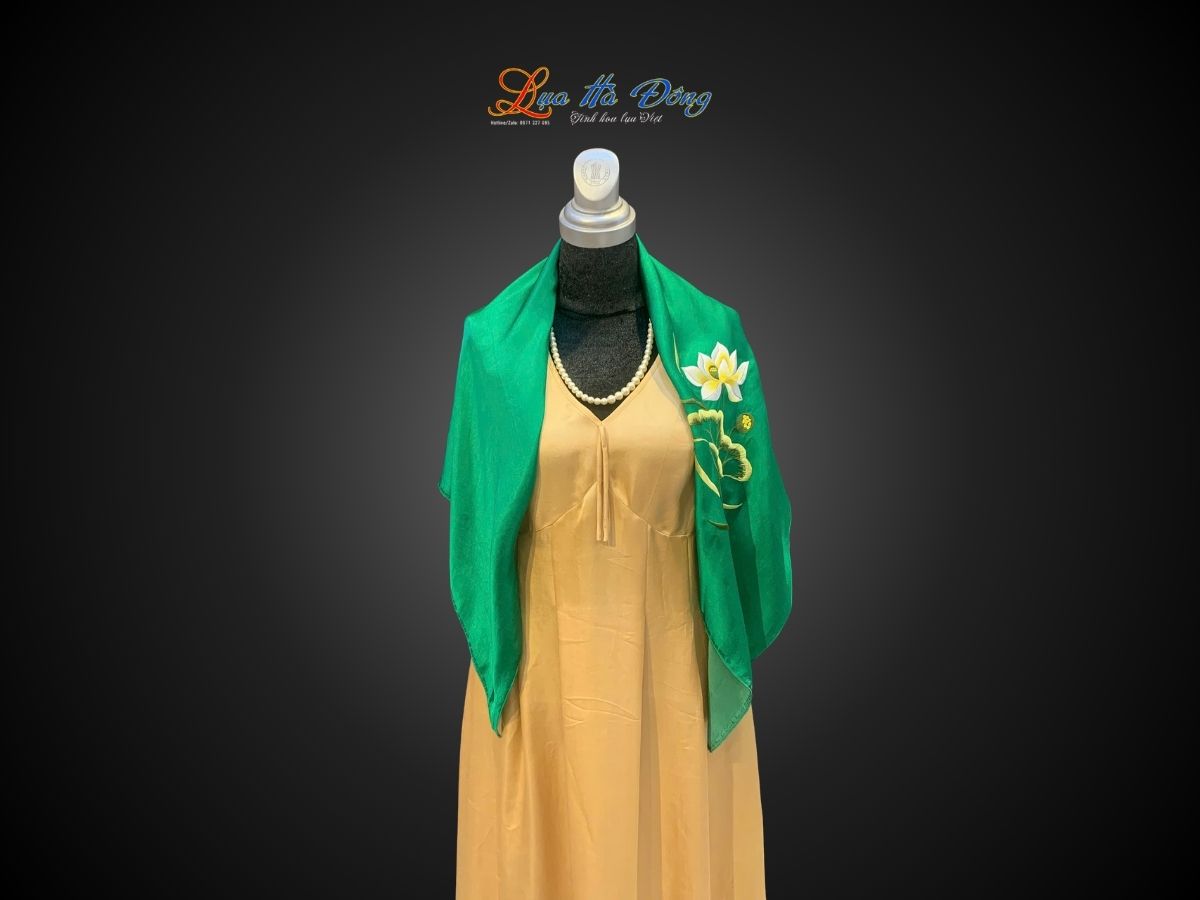 Khăn lụa vuông thêu sen trơn màu xanh lá KLTA9090/3